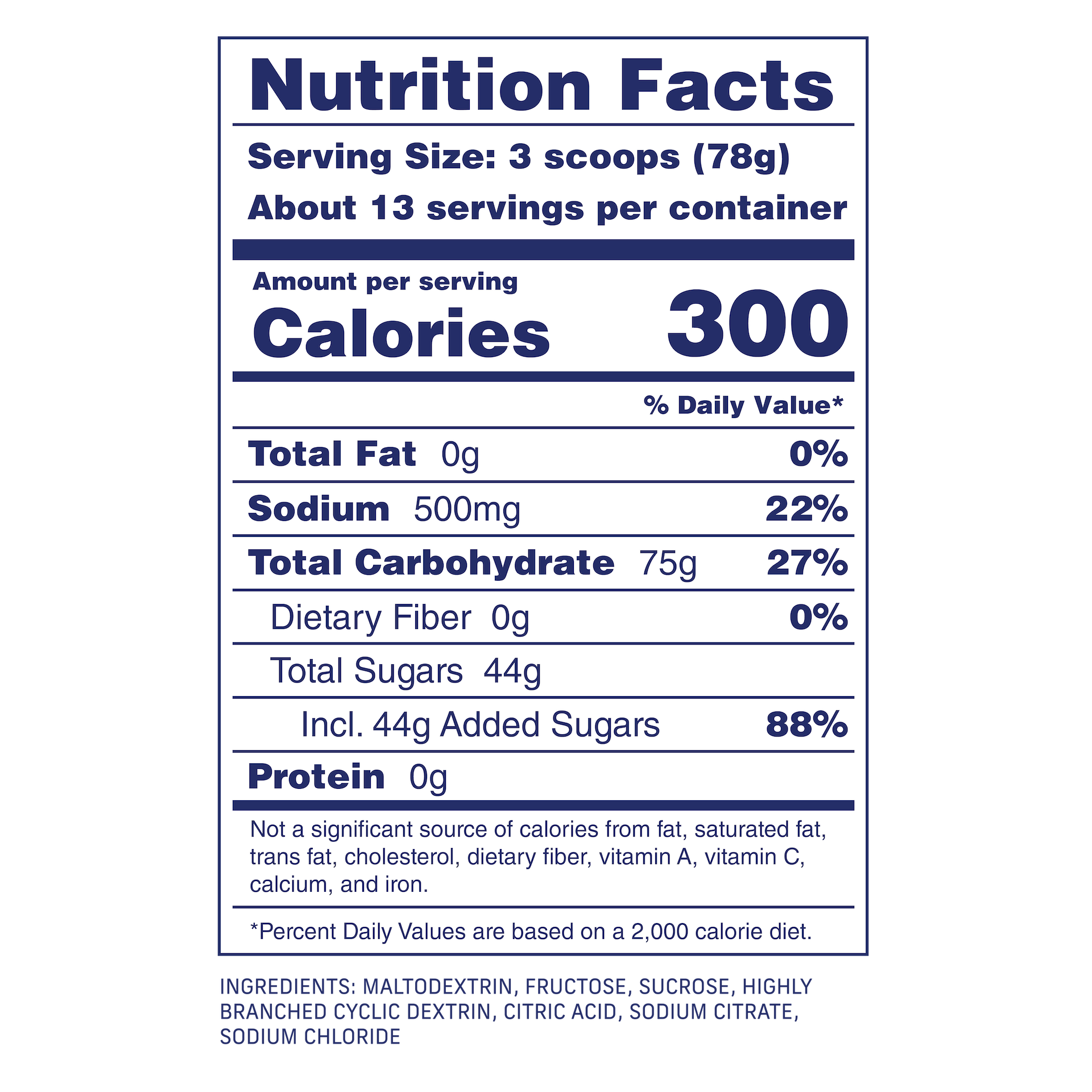 The perfect all-in-one drink mix for all of your endurance activities. This simple, yet effective drink mix delivers 75 grams of carbs, 300 calories, and 500mg of sodium per serving.